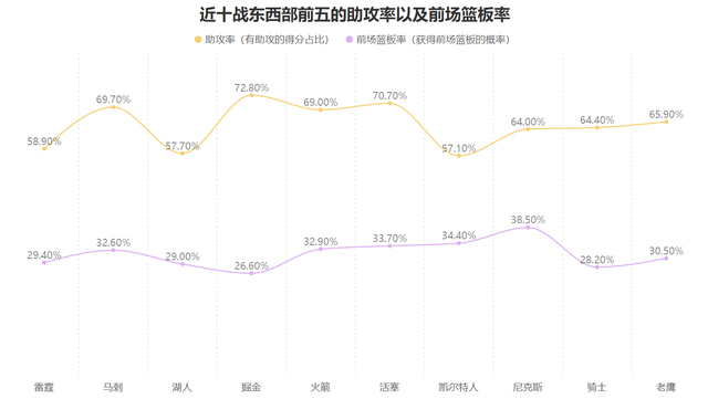 由于这样的进攻模式更多依赖球员的冲击力,当队友出手时有能力的球员都尝试冲抢篮板而不会等待队友分球,因此火箭的配合出手得分占比极低,他们前68战的助攻率也就是球队有助攻的得分占比仅有联盟最低的58%,因此那支火箭的比赛模式特别另类,但很多时候也的确有着不错的效果。